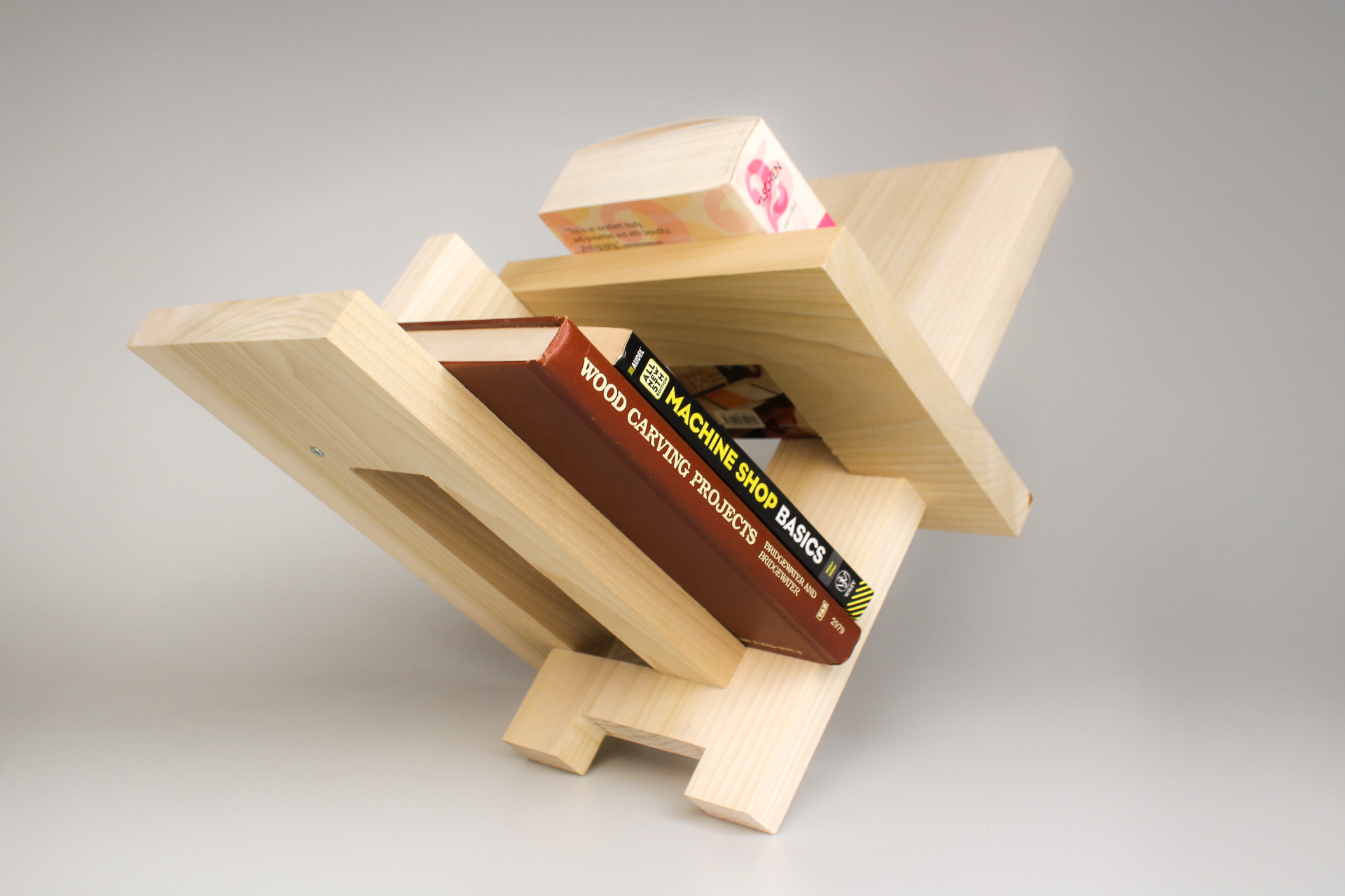 This bookshelf is an exploration of structure through reduction—crafted from four poplar boards with only 90-degree cuts. The intersecting planes form a striking X-shaped profile when viewed from the side. Assembled using a mix of traditional wood joinery and concealed screws, the design highlights balance, clarity, and the natural beauty of the material.